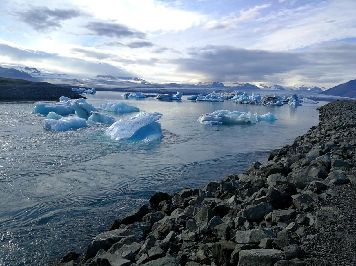 Another well-known spot was on our agenda, Breidamerkursandur or better known as the Diamond Beach. But on the way there, we had to have a quick stop, because there were some horses near the fence and I had to get a closer look. So my boyfriend pulled over and I tried to befriend the horses. But I have to say they weren’t impressed by me. So we got back to the car and set off again to the next beach. We arrived shortly after at the parking lot and it was even busier than before. However, we got out and walked to the beach. Same as before, the beach itself was nice, but not as impressive as it looked in the pictures. Though I have to say, I was pretty impressed by the various sizes of icebergs drifting of the Jökulsárlón Glacier. So we decided to go more in this direction, when suddenly something moved in the water. We tried to get a closer look at it and saw a seal swimming in the sea. Not only we saw it, so did some other tourists. They were pretty excited and started following it, which the seal wasn’t keen on and it seemed kind of stressed. It was a shame to see, that the tourists didn’t seem to care and not giving him space, when the seal wanted to enter the beach. They scared it off on two attempts by coming closer and shouting, so the seal turned around and swam off. It disappeared as fast as it showed up. This scene made me sad and we decided to walk away from the beach and head towards the glacier. It was very stunning, but I couldn’t quite enjoy it as much as I wanted to. As humans, we should respect the nature and the residents of the places we visit, whether they’re other humans or animals or plants. I get that it’s exciting to see a seal in the wild, and I felt the same. However, it shouldn’t lead to cutting its way and stressing it out. Please keep your distance to wild animals! Not only is it more chilled for them, but you also get to see their natural behaviour!
